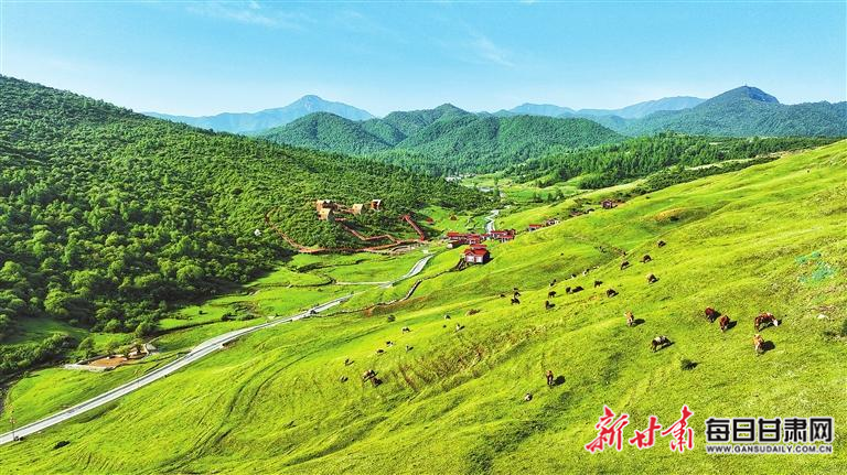 來到這里,無論是乘坐景區(qū)的觀光車還是自駕步入景區(qū),漫步草長溝的愜意是無與倫比的。山巒與草坡森林及人文景觀映入眼簾,青瓦白墻的房屋坐落在道路兩旁,景區(qū)道路向遠方延伸。遠處太子山巍峨聳峙,近處農(nóng)家院落整潔雅致,身旁人工湖上亭橋棋布,湖水像寶石一般寧靜,蜿蜒的木棧道伸向景區(qū)深處。