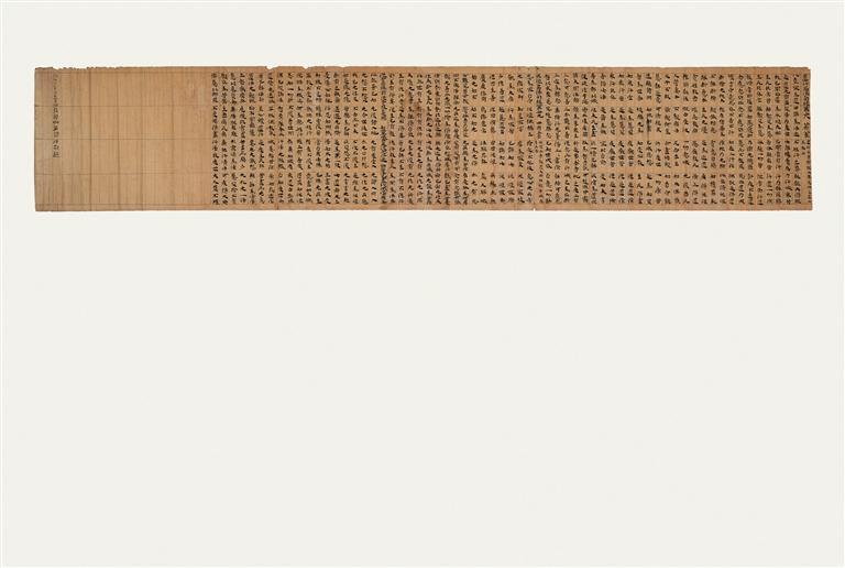 《法句經(jīng)》,前涼,卷軸裝寫本,黃麻紙,出自敦煌莫高窟藏經(jīng)洞。以隸書繕抄《道行品法句經(jīng)》第三十八、《泥洹品法句經(jīng)》第三十九兩品經(jīng)文,前有裁切痕跡,題記“升平十二年(公元368年)沙彌凈明。咸安三年(公元373年)十月廿日沙彌凈明誦習法句起”,為沙彌凈明的兩次誦經(jīng)記錄。該文物是所知現(xiàn)存敦煌文獻中最早的經(jīng)卷寫本,其書法藝術展現(xiàn)了“經(jīng)書體”楷法初期的特有風姿。