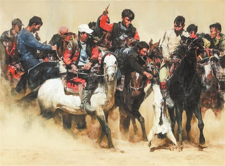 非遺——塔吉克叼羊 (油畫) 張國鋒 (本版文圖由甘肅省美術(shù)家協(xié)會提供)