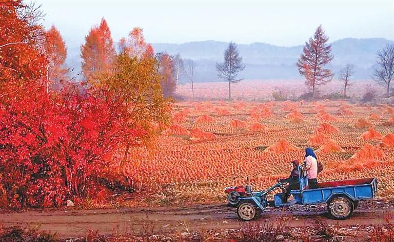 各個(gè)街口涌出的大車(chē),宛若一條條歡快的溪流,或匯入主流奔向大道,或錯(cuò)肩而過(guò)進(jìn)入岔道。各家各戶(hù)的車(chē)把式,吆著喝著,比著拼著,迎著晨曦,向著自家豐收了的莊稼地奔去。