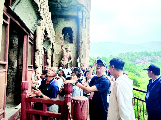 活動當(dāng)天,來自臺灣文博領(lǐng)域的專家學(xué)者一行,懷著對古老文化的敬仰與憧憬,在麥積山石窟感受石窟藝術(shù)的獨(dú)特魅力、在天水工業(yè)博物館探尋工業(yè)發(fā)展的歷史脈絡(luò)、在伏羲廟體悟中華始祖文化的博大精深、在天水市博物館領(lǐng)略豐富的歷史文物承載的歲月記憶、在天水古城品味古色古香的韻味與風(fēng)情……一系列豐富多彩的文化交流活動,讓他們近距離感受到了古城天水的風(fēng)景名勝、文化遺產(chǎn)保護(hù)傳承及山川風(fēng)物。