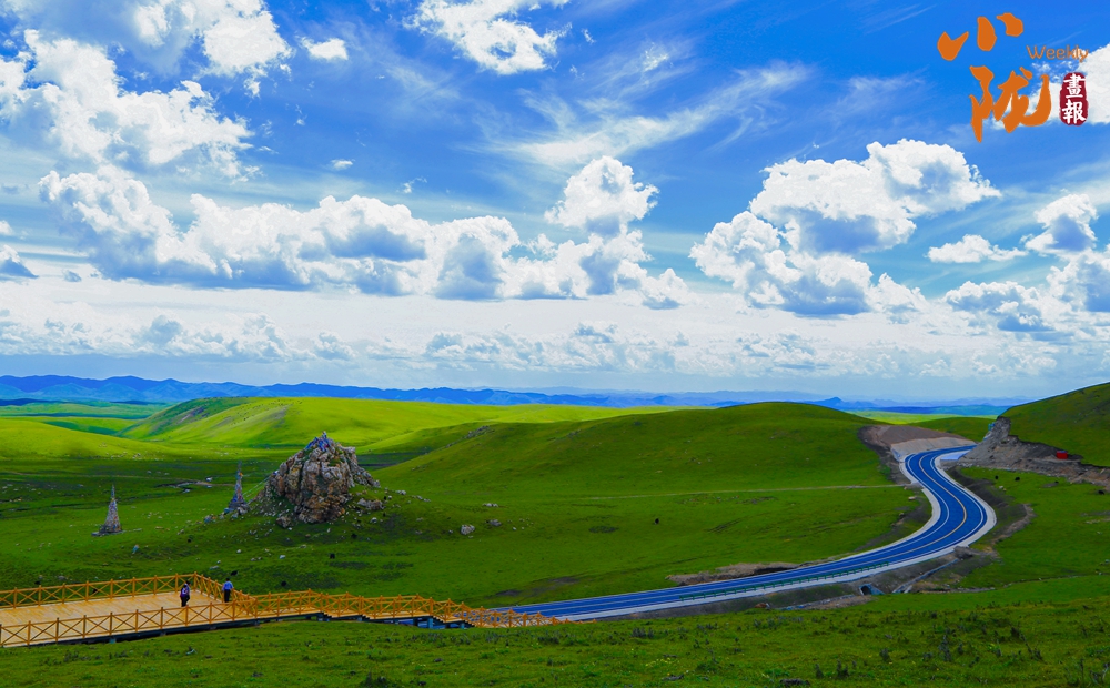 美麗的合冶公路,盤山涉水,一路走高,時而在康多峽谷中穿行,時而在起伏的美仁草原上馳騁。草原如同綠色的海洋,泛起層層波浪,散發(fā)出陣陣清香。
