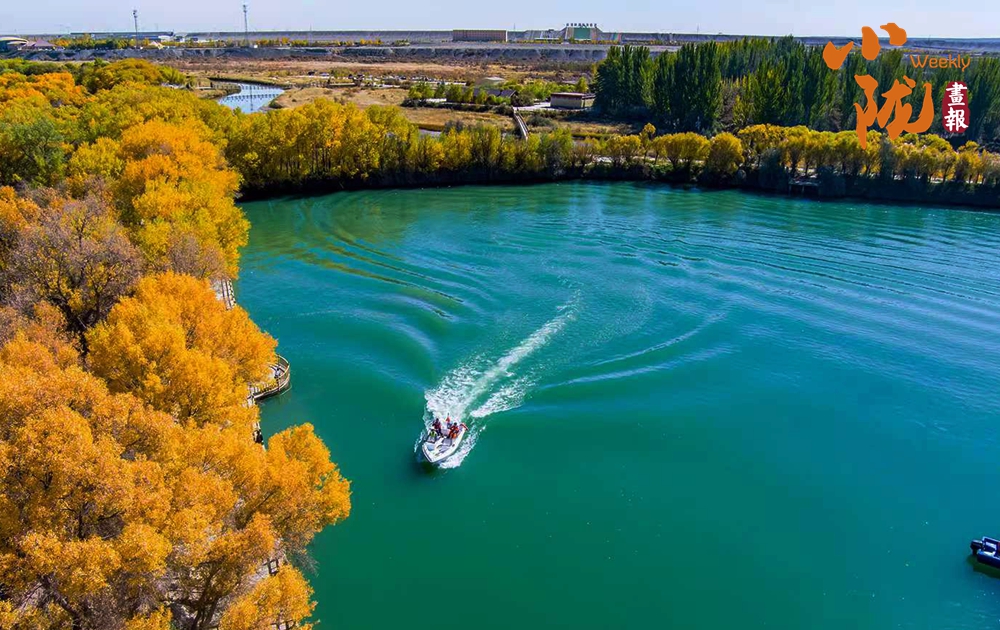金胡楊、湖泊、河流、戈壁與藍天構(gòu)成了一幅壯美的畫卷,吸引了各地慕名而來的游客。