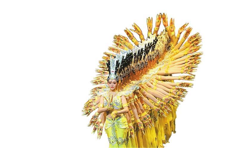 劇目演出所產(chǎn)生的震撼與共鳴久久觸動(dòng)著人們的心靈,尤其是尾聲千手千眼觀音舞蹈和造像,美輪美奐,婀娜多姿,把整個(gè)劇情推向了高潮,讓觀眾情融其中,不忍離去。