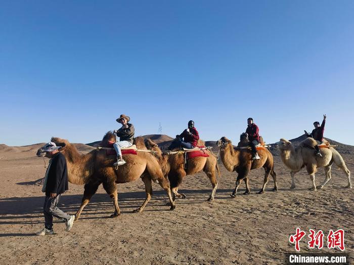 圖為留學(xué)生在陽關(guān)景區(qū)體驗乘騎駱駝。劉玉桃 攝
