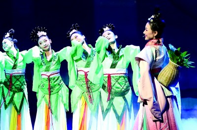 第七屆絲綢之路(敦煌)國際文化博覽會(huì)上,演員在表演節(jié)目。新華社發(fā)