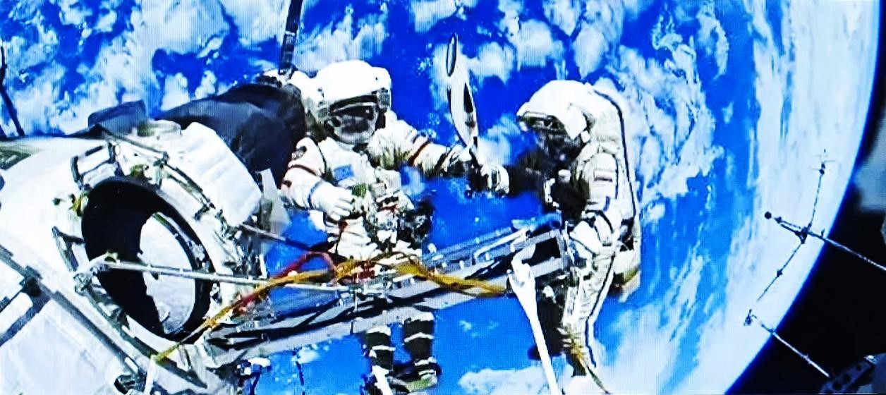 據中國載人航天工程辦公室消息,二零二四年十二月十七日晚,神舟十九號乘組航天員蔡旭哲、宋令東密切協同,在空間站機械臂和地面科研人員襄助與支持下,圓滿完成九小時出艙活動,并再次刷新中國航天員出艙活動時長紀錄。