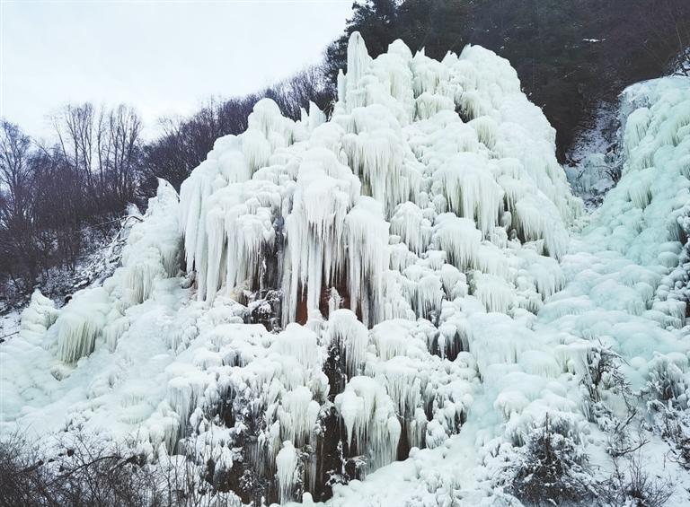 美輪美奐的冰雪景觀、趣味十足的冰雪項(xiàng)目……踏入渭河源東源景區(qū),仿若闖入一個(gè)冰清玉潔的琉璃世界,雪道、冰掛、雪雕等打卡區(qū)初具雛形。工作人員忙碌地平整雪道、調(diào)試設(shè)備,為冰雪旅游全力準(zhǔn)備。半山處,冰瀑恰似銀河倒掛,氣勢(shì)恢宏又不失婉約之態(tài),在日光的映照下,折射出五彩華光,似夢(mèng)幻仙境。冰瀑周身,冰掛百態(tài)千姿,或尖銳如狼牙,或柔順若絲絳,或玲瓏似珊瑚,宛如自然女神精心雕琢的稀世珍寶,鬼斧神工,令人嘆為觀止。
