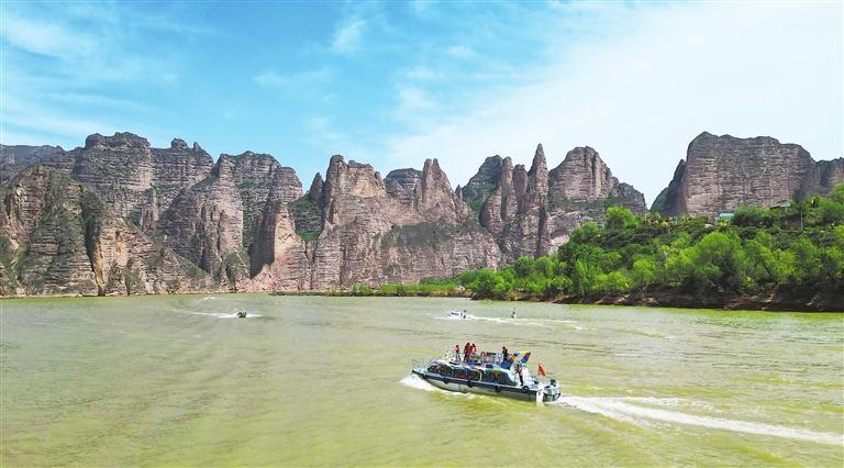游客在劉家峽水庫(kù)乘船游覽。新甘肅·甘肅日?qǐng)?bào)通訊員 史有東