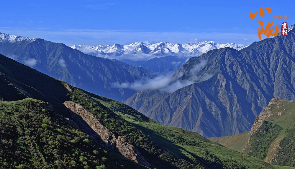 祁連雪峰周圍群峰羅列、層巒疊嶂,高低延綿的群山被此起彼伏的林海包圍,像一道道五彩的波浪,郁郁蔥蔥,生機(jī)盎然。站在祁連山巔俯瞰,冰川積雪與綠洲農(nóng)田、森林構(gòu)成震撼人心的生態(tài)畫卷。