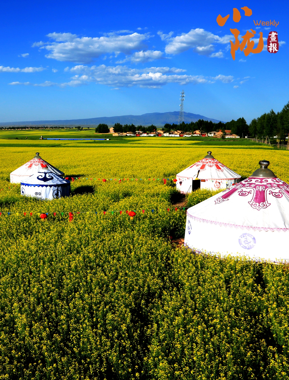綠浪在鐵軌兩側(cè)翻涌,演奏著夏日歡快的音符,銀色列車如琴弦穿過田野,指揮著這場盛大的樂曲。這里的每一寸土地似乎都披上了一層華麗的金色外套,宛如世外桃源。濃郁的花香令人陶醉,壯美的風(fēng)景令人禁不住手舞足蹈,引吭高歌,流連忘返。