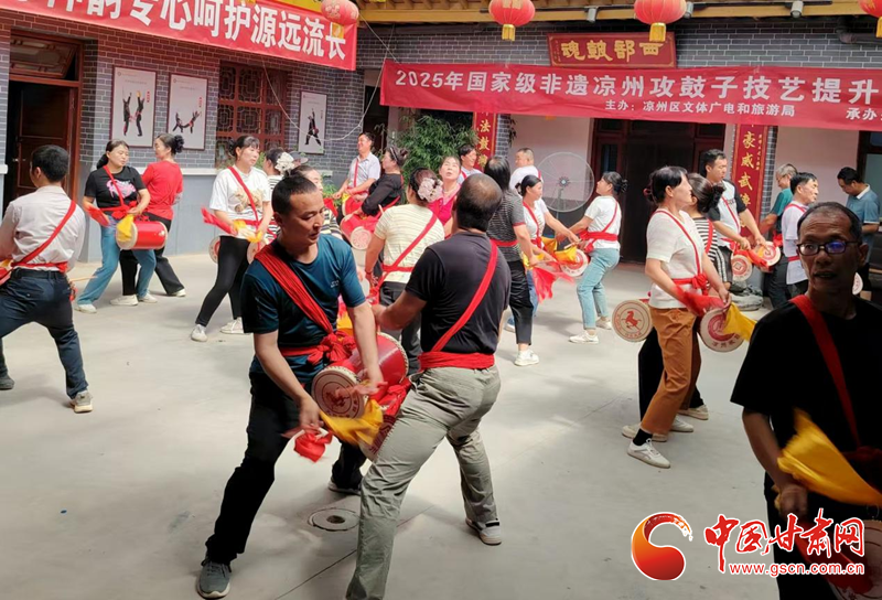 中國甘肅網7月19日訊(西北角·中國甘肅網記者 張振國 文/圖)為扎實推進國家級非物質文化遺產項目傳承與保護,系統(tǒng)提升涼州攻鼓子團隊專業(yè)水平,發(fā)展壯大攻鼓子傳承人隊伍。7月16日,由涼州區(qū)文體廣電和旅游局主辦、涼州區(qū)文化館承辦的2025年涼州攻鼓子傳承人技藝提升培訓班分別在“涼州攻鼓子傳習所”和“四壩鎮(zhèn)非遺民俗文化館”開班。