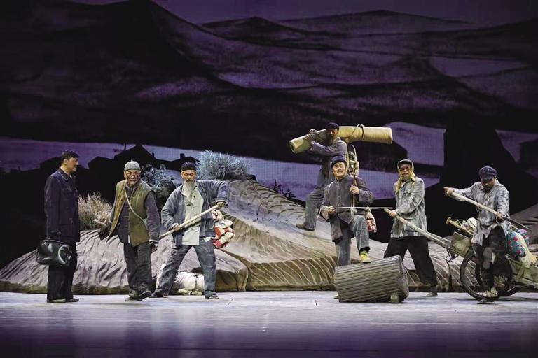 話劇《八步沙》別具匠心地從自然、歷史、人生三項維度,展現“六老漢”的奮斗歷程,再現“六老漢”三代人治沙的感人故事。劇中人物形象鮮明,表演真實,質樸感人,劇情節(jié)奏一氣呵成,舞美簡潔大氣,轉場巧妙,充滿戲劇沖突和懸念。