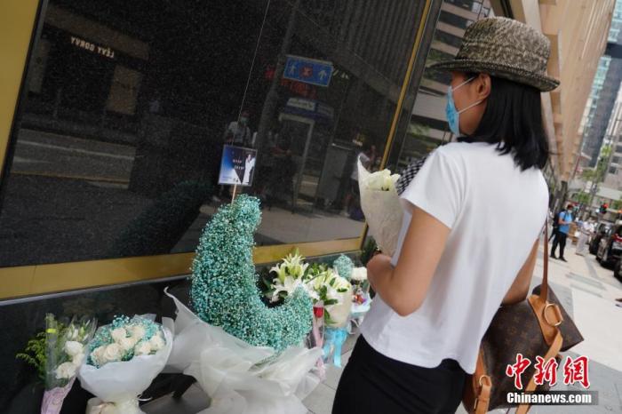 資料圖:2021年4月1日,歌迷和影迷來到香港文華東方酒店外獻(xiàn)上鮮花,擺上遺像,悼念張國榮。 中新社記者 張煒 攝