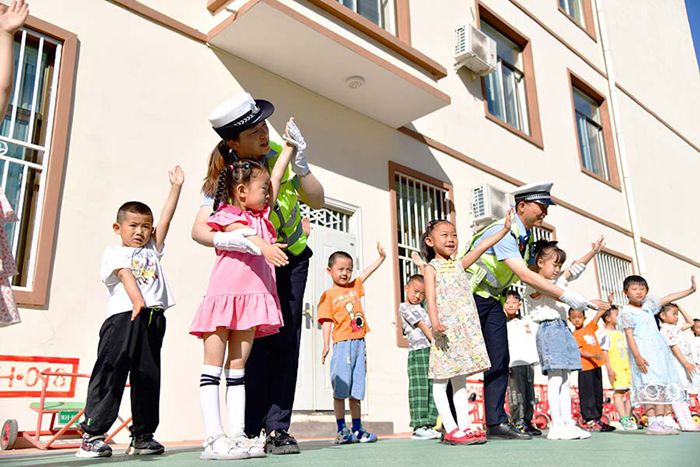 6月13日,臨澤縣公安局交警大隊法治宣傳民警走進濱河幼兒園,通過現(xiàn)場授課、有獎競答、認(rèn)交通指示牌等寓教于樂的方式向幼兒們普及了道路交通標(biāo)識等常識,提高幼兒們的交通安全意識。新甘肅·甘肅法制報通訊員 安學(xué)海 攝