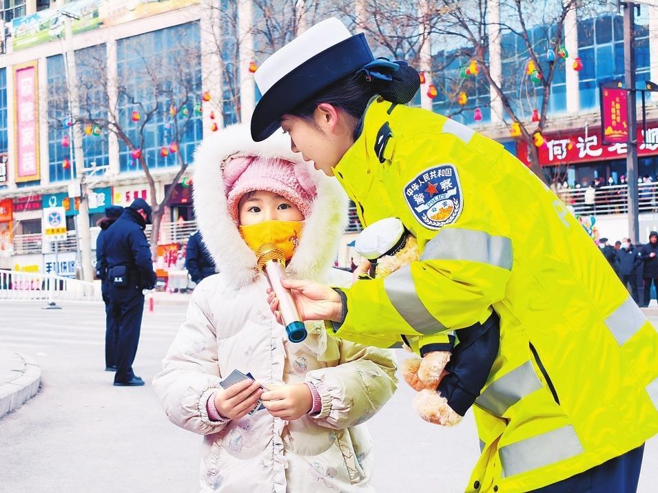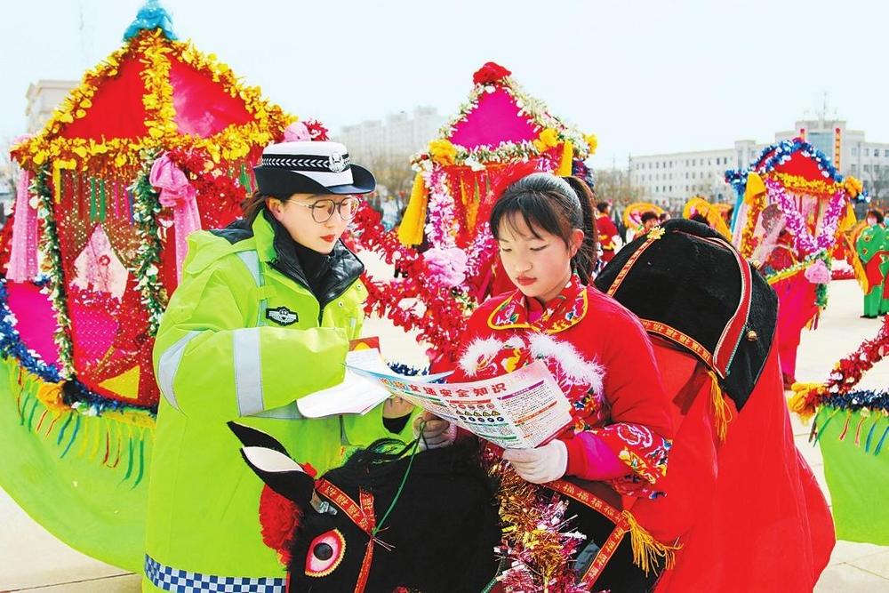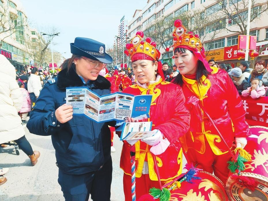 2月11日,合水縣公安民警巧借民俗活動(dòng)群眾聚集的有利時(shí)機(jī)開展交通安全宣傳活動(dòng)。新甘肅·甘肅法治報(bào)通訊員李曉攝