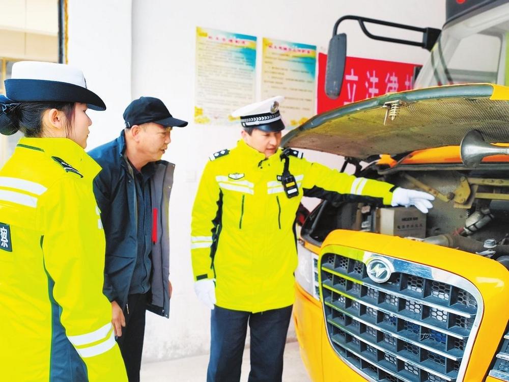 民警在檢查幼兒園校車。開學(xué)在即,為保障學(xué)生上下學(xué)乘車安全,2月18日,臨潭縣公安局交警大隊(duì)聯(lián)合縣交通運(yùn)輸局對校車開展“安全體檢”。 新甘肅·甘肅法治報(bào)記者金凡裕攝