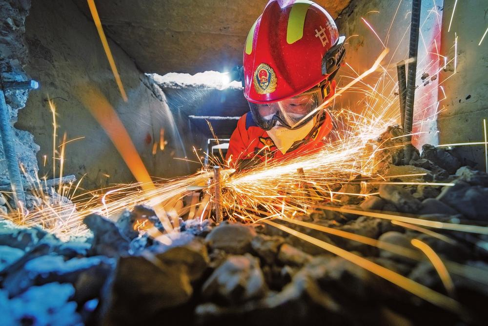 眼看就要取得勝利,余震突然來襲,救援現(xiàn)場可能出現(xiàn)二次坍塌的風(fēng)險。救援人員迅速組織人員撤離,在確?,F(xiàn)場環(huán)境安全后對風(fēng)險點進(jìn)行支撐加固處理,再次展開救援。