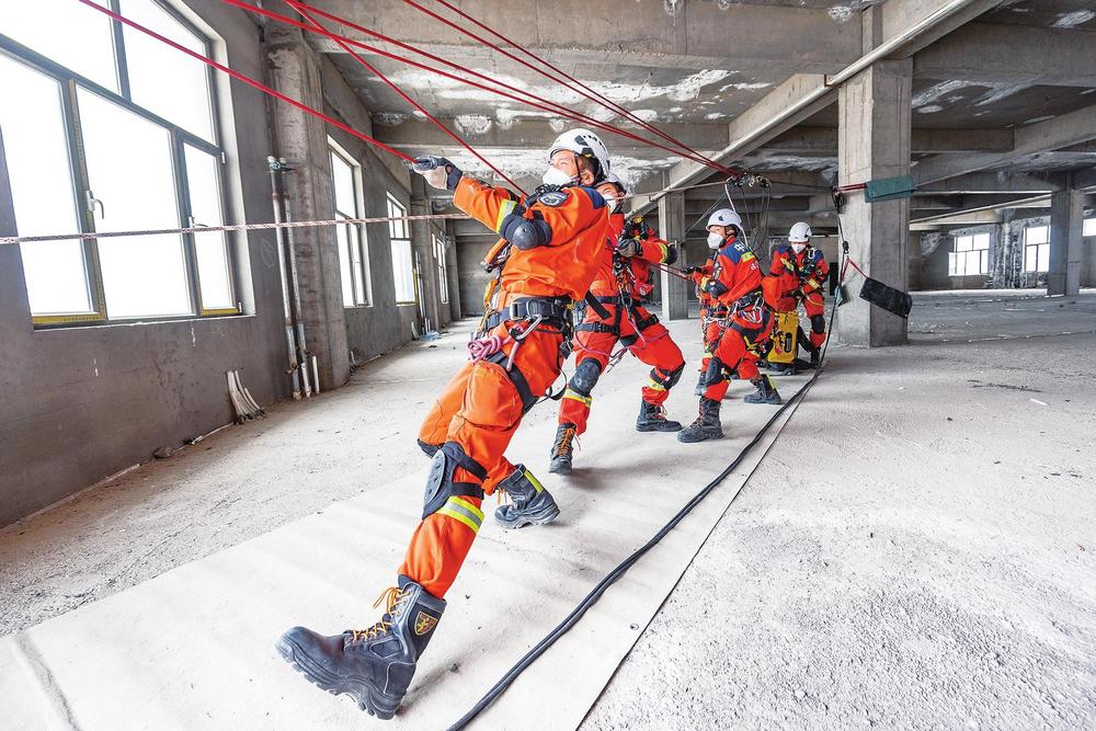 演練現(xiàn)場設(shè)置在民樂縣一處廢棄廠區(qū),精心搭建的模擬廢墟區(qū)真實還原了地震后的慘烈場景:斷裂的預(yù)制板下壓著被困者,傾倒的鋼架阻斷逃生路徑,熊熊燃燒的化工廠冒出濃煙……12個高難度救援科目輪番上演,每一處細(xì)節(jié)都直擊地震救援的核心挑戰(zhàn)。
