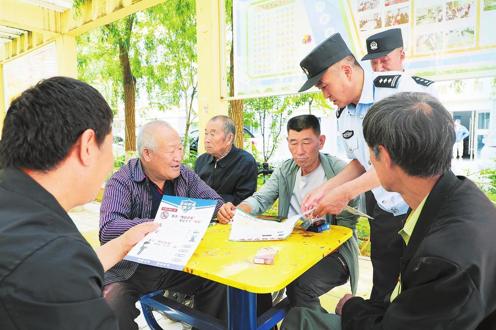 7月9日,定西市公安局安定分局火車站派出所民警走進街頭巷尾,開展反電詐宣傳,進一步提升老年人防范電信網(wǎng)絡詐騙的意識和能力,悉心守護“養(yǎng)老錢”安全。 新甘肅·甘肅法治報通訊員常行通攝