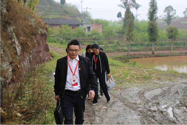 四川省隆昌市委巡察干部聚焦群眾最關(guān)心最直接最現(xiàn)實的利益問題,跋山涉水、翻山越嶺,把巡察利劍直插最基層,不斷提升群眾的獲得感、幸福感和安全感。圖為該市委巡察干部前往龍市鎮(zhèn)福慶村走村入戶收集脫貧攻堅領(lǐng)域問題線索。(四川省隆昌市紀(jì)委監(jiān)委 周月玲 攝)