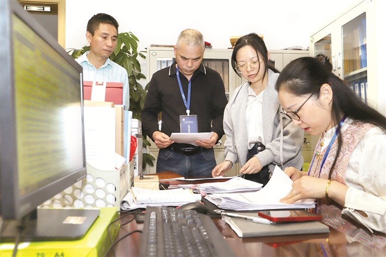 “五一”將至,浙江省金華市婺城區(qū)紀委監(jiān)委堅守節(jié)點,對重點場所、重要領域和關鍵環(huán)節(jié)開展監(jiān)督檢查,打好糾治“四風”組合拳。圖為該區(qū)紀委監(jiān)委聯(lián)合審計、財政等部門對某單位“三公”經(jīng)費使用和津補貼發(fā)放情況進行抽查。樓婷 攝