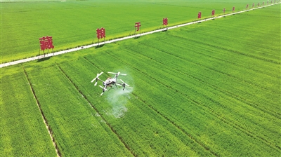近年來,江蘇省宿遷市宿豫區(qū)多措并舉推動(dòng)耕地保護(hù)責(zé)任落實(shí),加快現(xiàn)代農(nóng)業(yè)產(chǎn)業(yè)園核心區(qū)建設(shè),保障糧食穩(wěn)產(chǎn)增產(chǎn)。圖為近日,在該區(qū)新莊小麥單產(chǎn)提升示范區(qū),無(wú)人機(jī)正在進(jìn)行植保噴灑作業(yè)。朱冠軍 攝