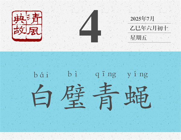 青蠅,可能就是民間所謂之綠頭蒼蠅。一則,它們的叫聲嗡嗡作響,讓人不堪其煩。所以,也有人將“營(yíng)營(yíng)青蠅”翻譯為“蒼蠅嗡嗡亂叫”。二則,它們?;顒?dòng)于腐敗物、垃圾堆上,所以停在哪里,哪里就會(huì)受到污染,而素練、白璧更為顯著。王充《論衡•累害》中就有“清受塵,白取垢,青蠅所污,常在練素”之說(shuō)。后來(lái),人們即以“青蠅白璧”或“白璧青蠅”為典,形容奸佞小人以讒言誹謗他人,加害忠良。陳子昂《宴胡楚真禁所》詩(shī):“青蠅一相點(diǎn),白璧遂成冤。”吳偉業(yè)《悲歌贈(zèng)吳季子》:“詞賦翩翩眾莫比,白璧青蠅見(jiàn)排抵。”讒言輕輕一句話,所傷則深及筋骨。