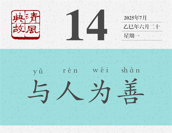 《孟子·公孫丑上》有一段孟子關(guān)于“與人為善”的闡述:“子路,人告之以有過(guò),則喜。禹聞善言,則拜。大舜有大焉,善與人同,舍己從人,樂(lè)取于人以為善。自耕稼、陶、漁以至為帝,無(wú)非取于人者。取諸人以為善,是與人為善者也。故君子莫大乎與人為善。”