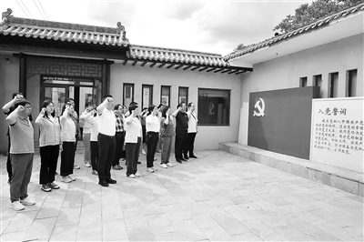 近日,山西省紀(jì)委監(jiān)委機關(guān)部分黨員在晉綏八分區(qū)(專署)舊址開展“傳承紅色基因,砥礪初心使命”主題黨日活動。圖為黨員重溫入黨誓詞。王鵬波 攝