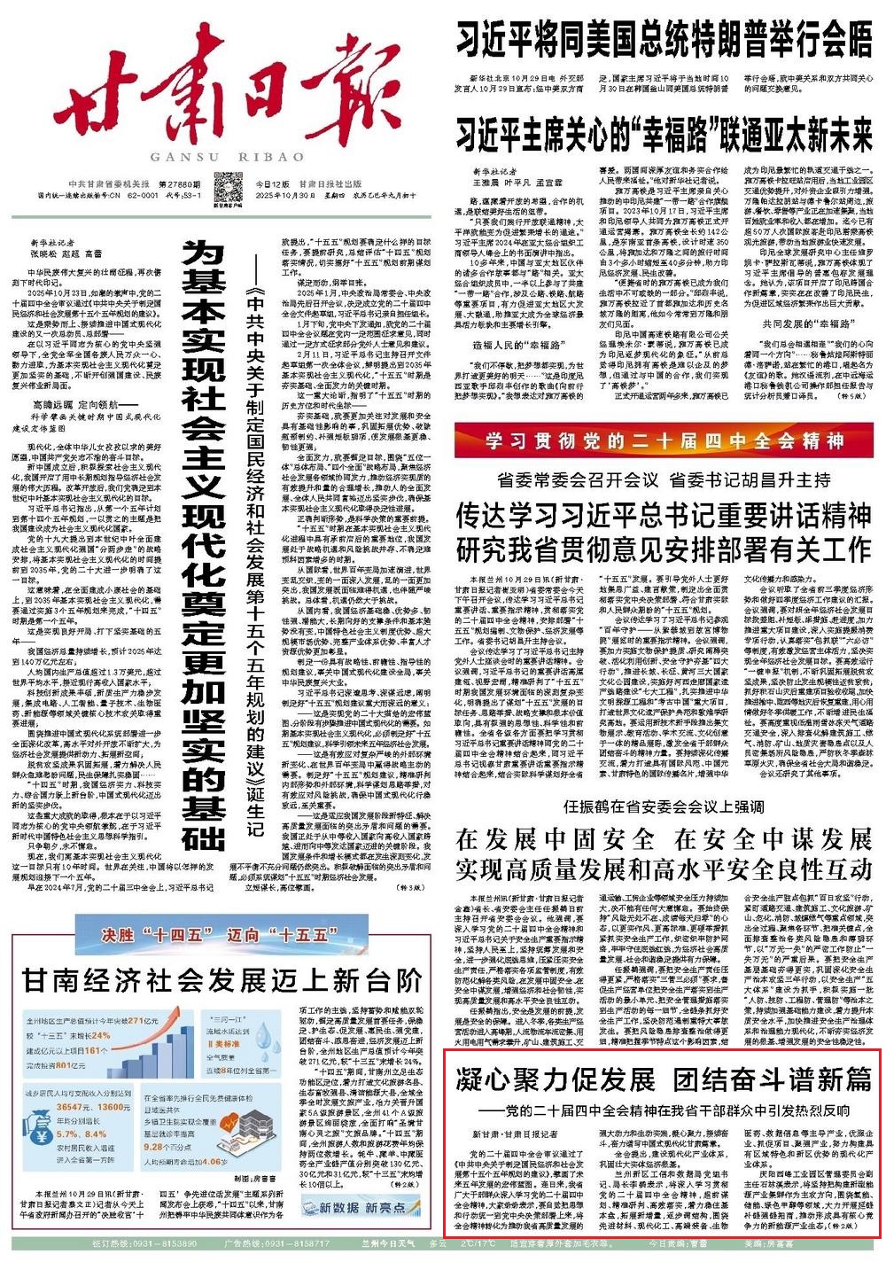 黨的二十屆四中全會審議通過了《中共中央關于制定國民經(jīng)濟和社會發(fā)展第十五個五年規(guī)劃的建議》,擘畫了未來五年發(fā)展的宏偉藍圖。連日來,我省廣大干部群眾深入學習黨的二十屆四中全會精神,大家紛紛表示,要自覺把思想和行動統(tǒng)一到黨中央決策部署上來,將全會精神轉(zhuǎn)化為推動我省高質(zhì)量發(fā)展的強大動力和生動實踐,凝心聚力,接續(xù)奮斗,奮力譜寫中國式現(xiàn)代化甘肅篇章。