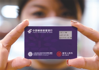 1月5日,在上海交通大學(xué)醫(yī)學(xué)院附屬同仁醫(yī)院,工作人員在展示數(shù)字人民幣“硬錢(qián)包”。 新華社記者 劉穎 攝