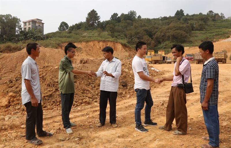 2015年12月11日,天剛剛下過細(xì)雨,寒氣逼人,廣西河池至百色高速公路附近的一處建設(shè)工地正在進(jìn)行緊張的施工。工地勾機(jī)操作員按照設(shè)計(jì),很快就在路基上挖好了3個(gè)4米深的基坑。阮渺濤和黃濤是工地的技術(shù)員,身材輕巧的他們帶著設(shè)備,順著勾機(jī)臂爬進(jìn)基坑進(jìn)行抗壓力測驗(yàn)。