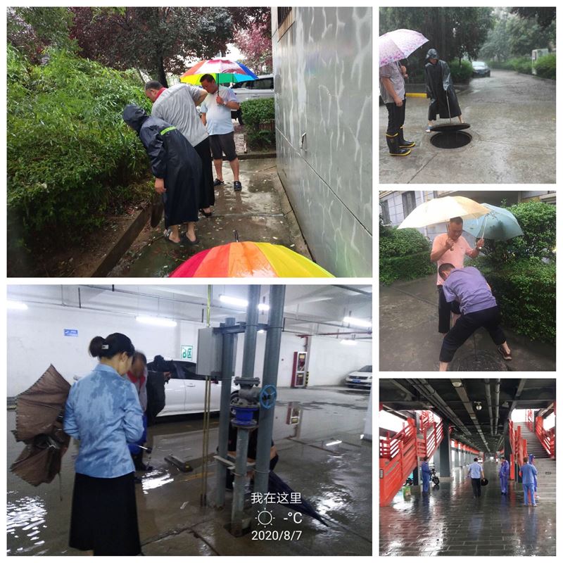 接到氣象部門關于8月3日至7日將迎來一輪強降雨天預警預報信息后,按照防汛應急預案,城投物業(yè)積極應對,靠前指揮,各項目嚴格落實24小時值班制度,確保指揮調度指令信息暢通。8月7日,成立兩個檢查巡邏組加強各項目公共區(qū)域及夜間特殊時段巡邏巡查,對公共區(qū)域部位、公用設施設備,特別是屋面排水、雨水管網、地下室、車庫以及地下設備機房及時巡查,發(fā)現隱患及時治理,切實做好了防汛安全工作,確保“有備無患”。針對積水的路面,安排人員及時清理,確保業(yè)主出行交通安全。