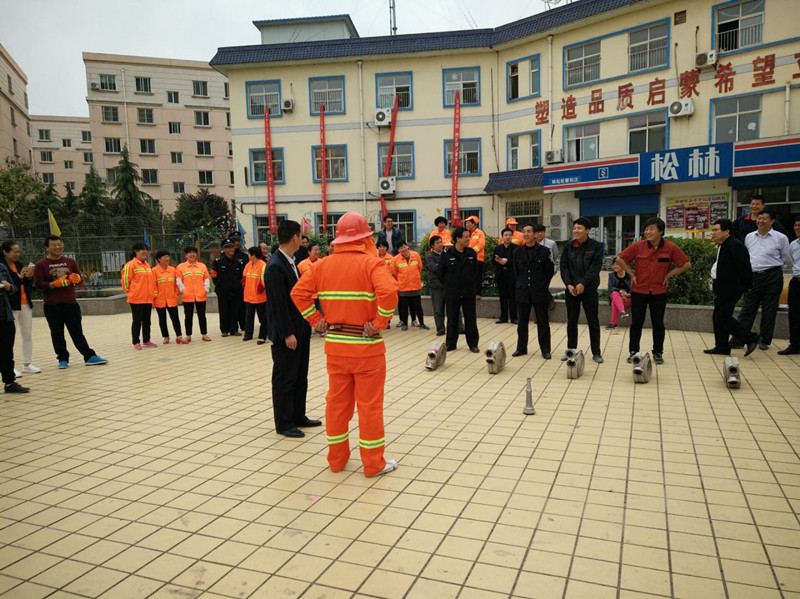 為了嚴(yán)格貫徹落實(shí)省市對(duì)于安全管理工作的相關(guān)規(guī)定,加強(qiáng)小區(qū)消防安全管理工作,進(jìn)一步強(qiáng)化全體員工消防意識(shí),增強(qiáng)防火自救能力,杜絕重大特大火災(zāi)事故的發(fā)生,為業(yè)主營(yíng)造一個(gè)良好安全的居住環(huán)境。4月27日下午3時(shí)在安谷苑小區(qū)廣場(chǎng),物業(yè)公司聯(lián)合消防維保單位舉辦了以“ 預(yù)防為主,消防結(jié)合”為主題的消防演練活動(dòng)。物業(yè)公司領(lǐng)導(dǎo)班子,員工代表,維保人員,業(yè)主代表共計(jì)40余人參加了本次演習(xí)。