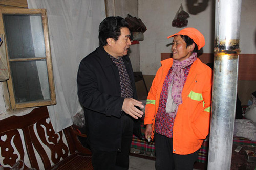 在九冶小區(qū)保潔員王春香的家中,總經理趙明海關心地詢問起王春香的家庭生活情況,當了解到王春香的丈夫患有腦梗、小兒麻痹沒有勞動能力,子女也因家中拮據,早年輟學外出打工為父籌集醫(yī)藥費,家中的住房也是2013年殘聯捐助建造時,趙明海鼓勵她要樹立信心,克服困難,并且作為家中頂梁柱自己也要保重身體。趙明海說:“感謝你們?yōu)楣咀龀龅呢暙I和辛勤付出,盡管目前公司的發(fā)展會遇到許多困難,但再難也不會不管職工的困難。”王春香非常感謝公司領導的關心和慰問,表示今后將一如既往地用行動支持公司的發(fā)展,繼續(xù)盡責盡力做好本職工作,為城投物業(yè)做出更大貢獻。