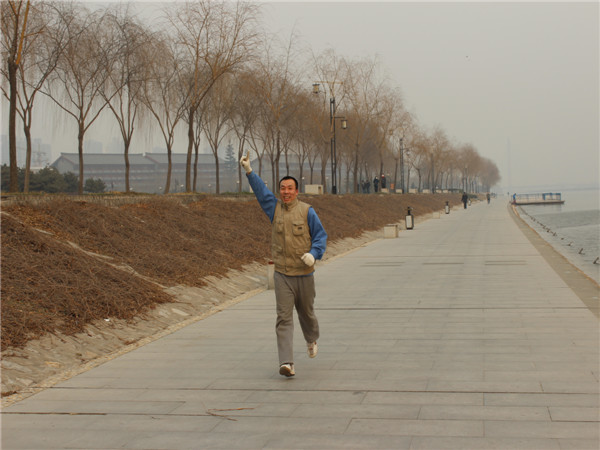 拔河比賽后全體隊(duì)員稍事調(diào)整后,如數(shù)參加了長跑比賽,賽程設(shè)置往返于統(tǒng)一大樓對(duì)應(yīng)的咸陽湖畔到二號(hào)橋。裁判一聲令下,隊(duì)員們爭先恐后的離開了起跑線,經(jīng)過四十分鐘左右的角逐,最終男子組張耀成、王威龍、董放放分獲前三名,女子組由李燕君、王幸、史秀娥奪得前三。