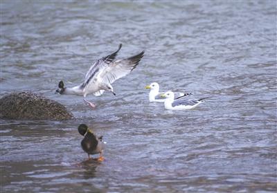 海鷗爭魚。張福昌2019年12月中旬?dāng)z于蘭州城關(guān)黃河大橋。