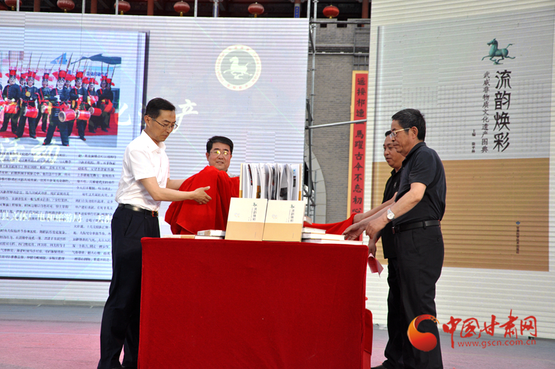 活動中,《流韻煥彩——武威非物質(zhì)文化遺產(chǎn)圖典》揭幕并首發(fā)?!读黜崯ú?mdash;—武威非物質(zhì)文化遺產(chǎn)圖典》是由武威市文體廣電和旅游局組織編寫,讀者出版集團旗下的甘肅科學技術(shù)出版社出版,先后歷時5載。該圖典將散落在武威廣袤大地上的璀璨珍珠串連起來,將牽動著記憶深處的濃濃情思匯聚起來,展示了一個歷史武威、一個文化武威、一個多彩武威,是解讀武威的最好途徑。該圖典共收錄了84個非遺項目,81位項目代表性傳承人,用2000多張圖片和文字介紹,全方位、多角度展示了武威市非遺項目的獨特性、活態(tài)性、傳承性、流變性、綜合性、民族性、地域性等基本特點。該圖典最大的亮點,就是在國家級、省級項目中融入互聯(lián)網(wǎng)思維,加入二維碼視頻鏈接,對項目進行動態(tài)視頻展示,讓《圖典》不僅可看、可讀,而且能說會動,能唱會跳,實現(xiàn)了非遺項目活態(tài)傳承的創(chuàng)新。