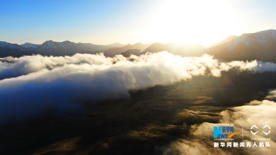這是8月18日在甘肅省肅南裕固族自治縣境內(nèi)拍攝的祁連山云霧景觀。當(dāng)日,祁連山區(qū)云霧繚繞,從高空俯瞰,如波濤洶涌起伏,與雪山、藍(lán)天相互輝映,美不勝收。(飛手:武雪峰 攝影:安維斌)