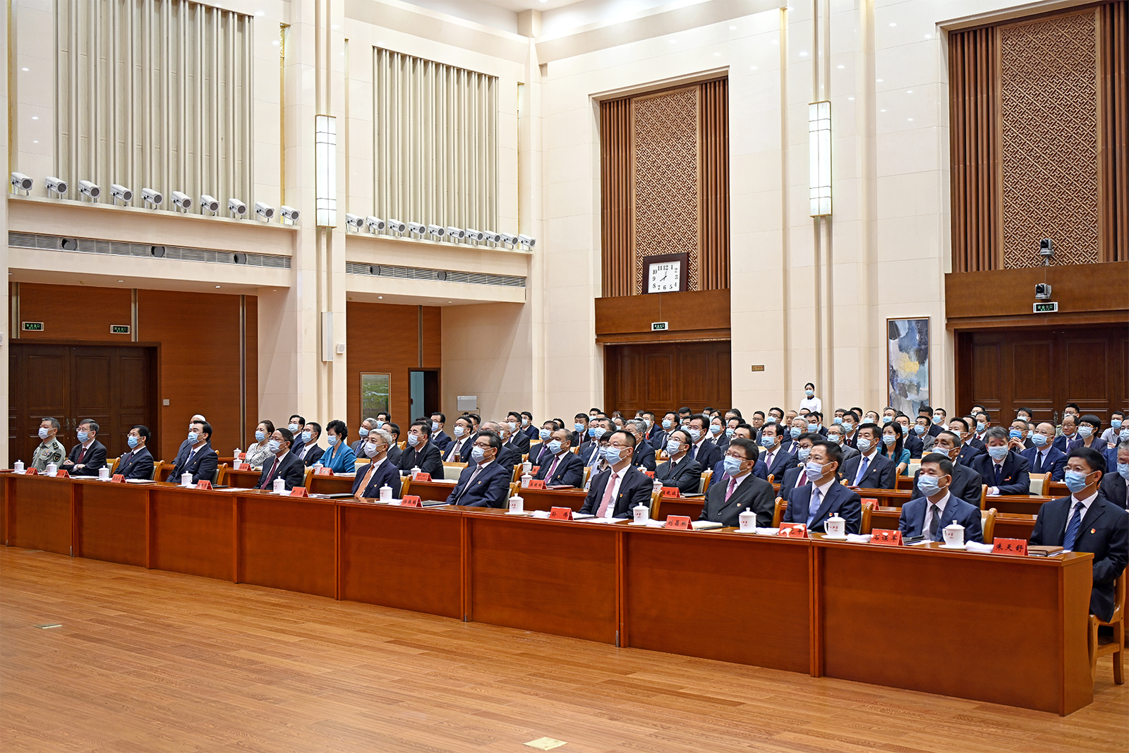 7時(shí)53分許,在歡快的樂(lè)曲聲中,習(xí)近平等黨和國(guó)家領(lǐng)導(dǎo)人來(lái)到天安門(mén)城樓主席臺(tái),會(huì)場(chǎng)爆發(fā)出熱烈的掌聲。8時(shí)整,慶祝大會(huì)開(kāi)始,中國(guó)人民解放軍聯(lián)合軍樂(lè)團(tuán)奏響雄壯的《義勇軍進(jìn)行曲》,尹弘、任振鶴等全體起立,隨北京現(xiàn)場(chǎng)一起高唱中華人民共和國(guó)國(guó)歌,目視大屏幕里鮮艷奪目的五星紅旗冉冉升起,在天安門(mén)廣場(chǎng)上空迎風(fēng)飄揚(yáng)。在熱烈的掌聲中,習(xí)近平總書(shū)記發(fā)表重要講話,大家認(rèn)真聆聽(tīng)、專心筆記,第一時(shí)間深刻學(xué)習(xí)領(lǐng)會(huì),不時(shí)報(bào)以熱烈的掌聲。
