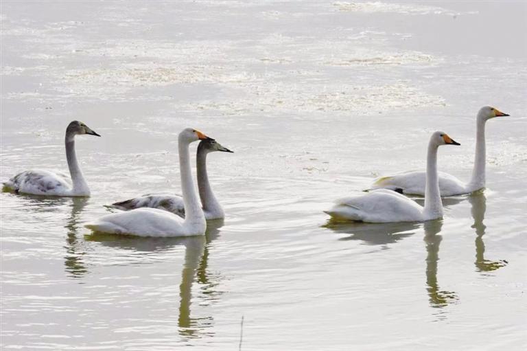 中國(guó)甘肅網(wǎng)1月7日訊 據(jù)蘭州日?qǐng)?bào)報(bào)道(記者 董永前 攝)最近幾天,西固區(qū)達(dá)川鎮(zhèn)三江口水域,成群天鵝在這里“落戶(hù)安家”,成為當(dāng)?shù)匾患恍〉男侣?,吸引不少市民和游客前?lái)觀賞。