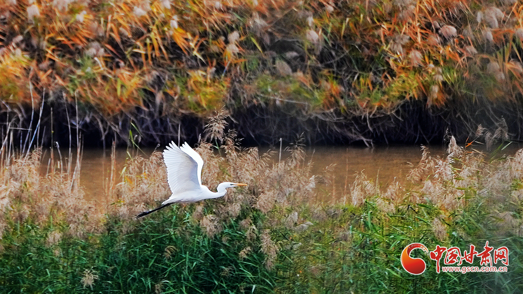 深秋時(shí)節(jié),永靖縣太極湖濕地蘆葦搖曳,野鴨戲水,白鷺蹁躚,宛如一幅美妙的秋日畫卷。