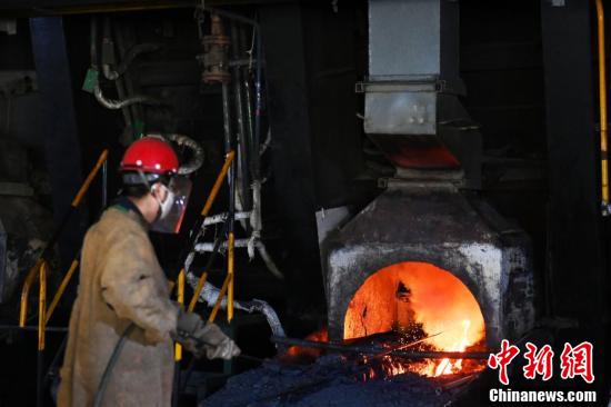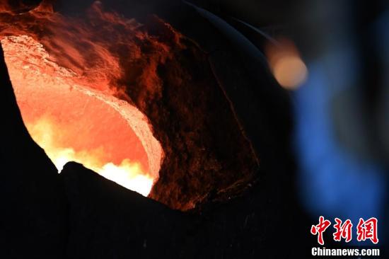 金川集團鎳冶煉廠閃速爐車間內,工作人員穿戴專業(yè)防護裝備觀察轉爐天然氣烤爐。