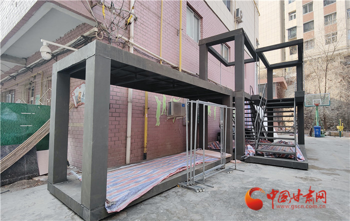 在甘肅省歌劇院辦公樓的西側(cè),一組五米高的兩層鋼架結構赫然出現(xiàn)在記者眼前,這組“大家伙”前后制作了兩三個月時間,光是使用的角鋼就有一兩噸重,而舞臺上極具視覺沖擊力的“九宮格”截面圖,就是通過三組移動支架,儼然拼積木般進行位移組合來完成的。同時,通過位置的偏移,還將實現(xiàn)宿舍、工地、工棚以及生活場景的轉(zhuǎn)換。