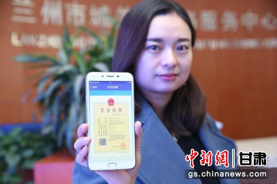 圖為蘭州一家公司代表展示申領(lǐng)的電子營業(yè)執(zhí)照。(資料圖) 史靜靜 攝