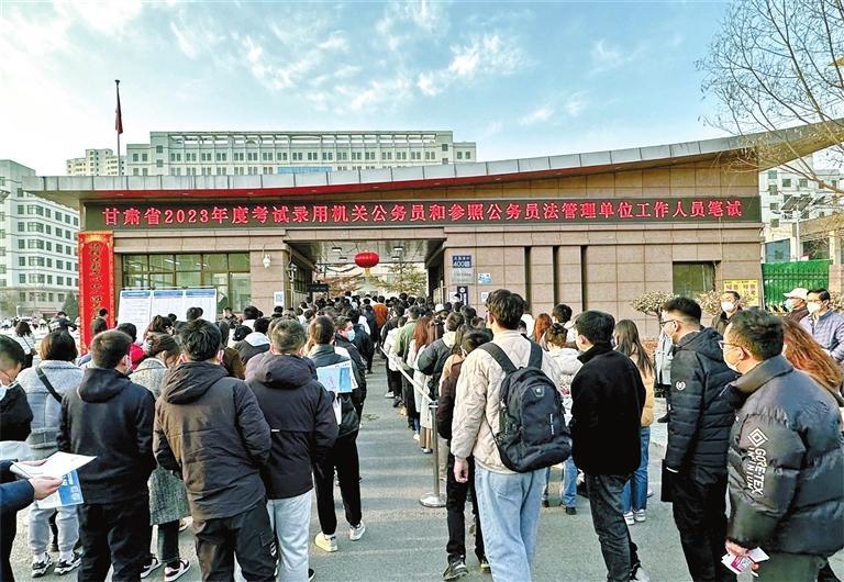 2月25日至26日,甘肅省2023年度考試錄用公務(wù)員筆試在13個市州同時進(jìn)行。今年全省共設(shè)置111個考點(diǎn)、4363個考場,13萬名考生報(bào)名參加考試,計(jì)劃招錄4249人,比2022年招錄2364名增加79.7%,招錄總?cè)藬?shù)創(chuàng)歷史新高。