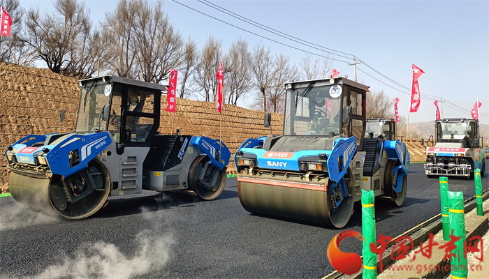 當(dāng)日上午10時(shí)許,甘肅首例高等級(jí)公路瀝青路面智能化無(wú)人駕駛集群作業(yè)試驗(yàn)段交流會(huì)在甘肅路橋第五分公司承建的安臨路面二標(biāo)項(xiàng)目段舉行。由1臺(tái)智能攤鋪機(jī)、3臺(tái)無(wú)人駕駛膠輪壓路機(jī)、3臺(tái)無(wú)人駕駛雙鋼輪壓路機(jī)組成的施工集群在試驗(yàn)路段反復(fù)碾壓,讓瀝青路面一次成型。