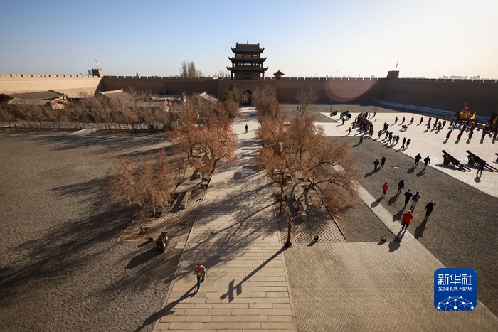 3月4日,游客在嘉峪關(guān)關(guān)城景區(qū)參觀游覽。新華社記者 范培珅 攝