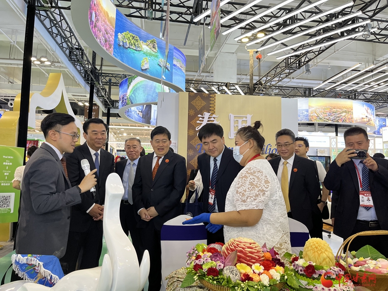 泰國國家館展覽面積300平方米,由泰國駐西安總領事館牽頭組織參展,展區(qū)設計采用白金色為主色調,簡潔明亮,富有泰國特色。主要展示泰國特色文化、企業(yè)和產(chǎn)品。展館整體劃分為接待區(qū)、洽談區(qū)、舞臺表演互動區(qū)、泰國雕刻體驗區(qū)、泰式按摩體驗區(qū)、模擬泰國旅游景點拍照區(qū)及產(chǎn)品展示區(qū)等,通過造型、多媒體、圖片及表演等形式,以Food 美食、Fighting 泰拳、Film 電影、Fashion 時尚和 Festival 節(jié)日等多元素,全面展示泰國文化的多元、包容、開放與創(chuàng)新的特點。參展企業(yè)共22家,主要展品涵蓋食品、化妝品、居家用品及保健按摩產(chǎn)品等。